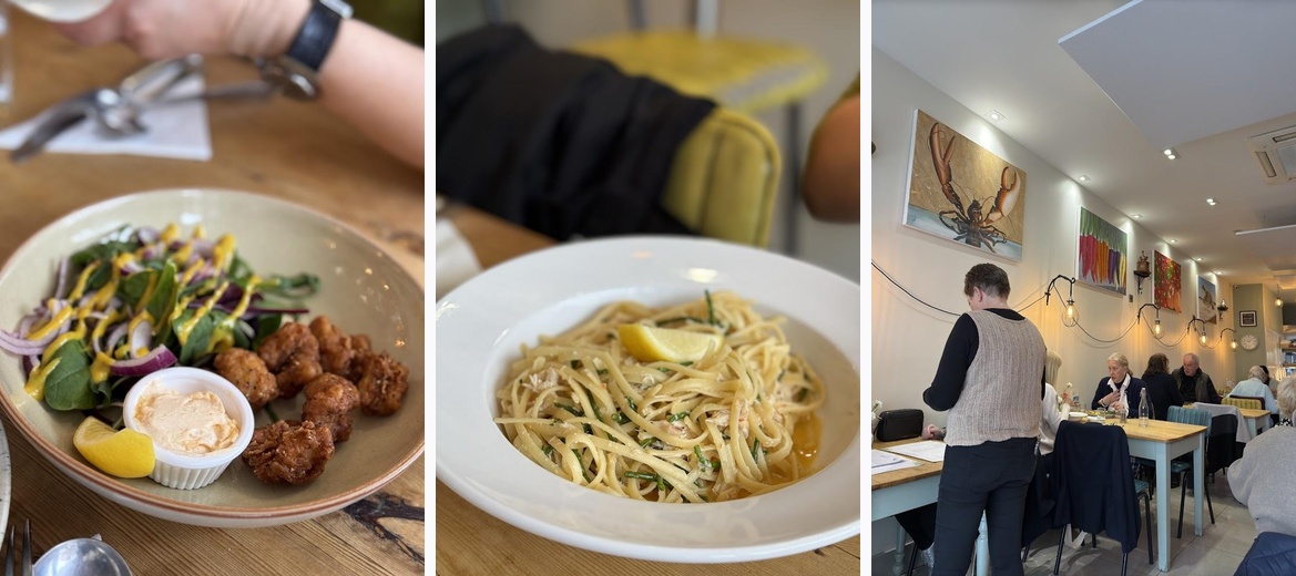 We visited this restaurant after reading glowing reviews, and it still managed to exceed our expectations! It’s a small, cozy place with an incredible atmosphere and absolutely outstanding food. We started with hummus and toasted bread, followed by roasted chicken for my husband and crab linguine for me. To top it off, we shared a bottle of wine—and everything was simply fantastic! The experience was so wonderful that we couldn’t resist taking a slice of cake to go. The total? Just £60—an amazing value for such a memorable meal. It was a special occasion for us, and we truly couldn’t have chosen a better place. Highly recommended!