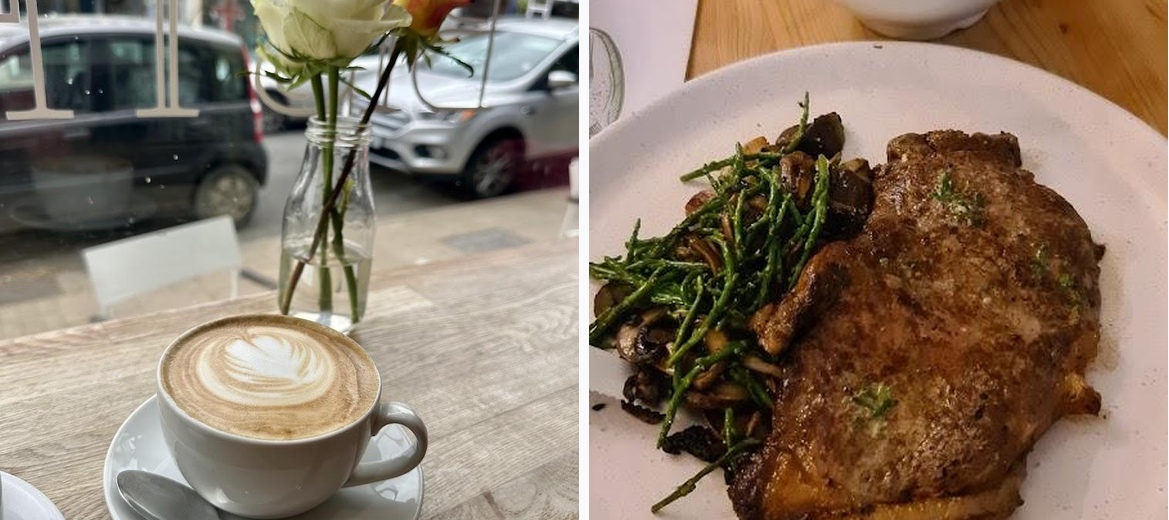 Stopped to grab a brunch and sat outside on a lovely sunny day. There's only three tables outside on the pavement not everyone's choice, but there plenty of seating inside. The staff are very happy friendly and helpful (even if the chef is grumpy!) and we're very attentive to our needs. We had a lovely brunch well cooked and tasty, prices are average and they have a reasonable choice with vegetarian options too. If you want a coffee snack or a bit more well worth stopping here.